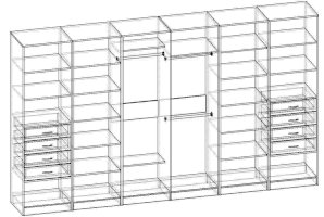 Вы можете выбрать любой цвет корпуса из представленных ниже вариантов цветов ЛДСП.Также вы можете собрать cами свою гардеробную Alex