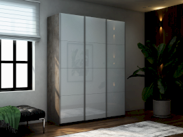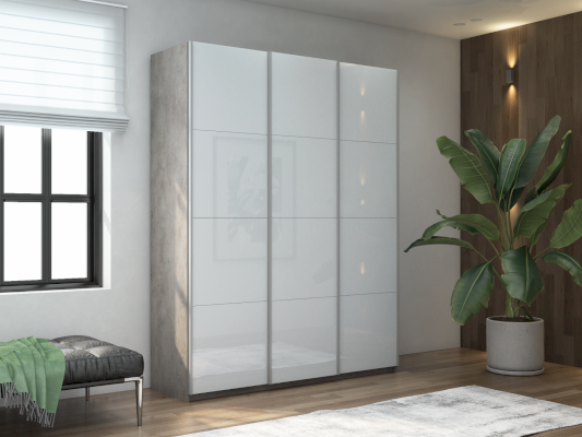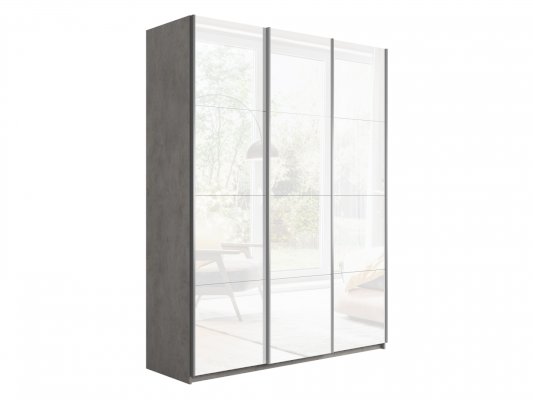 Шкаф-купе 3-х дверный Прайм Белое стекло/Белое стекло/Белое стекло 1800х2300х570 мм Бетон