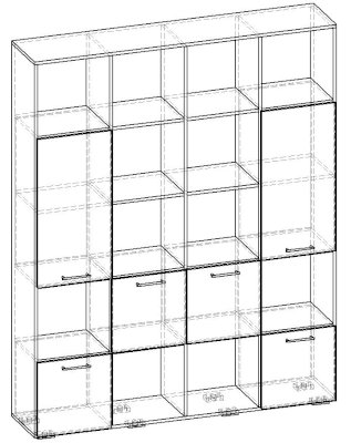 Применение задней стенки из ЛДСП (в ячейках с фасадами) позволяет использовать данный стеллаж для зонирования пространства (чтобы предотвратить опрокидывание, необходимо обеспечить крепление стеллажа к стене).
