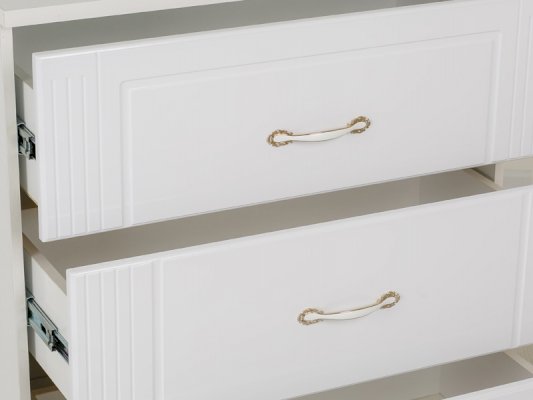 Модульная серия «Виктория» выполнена в стиле «Классика». Особенность серии - фасады МДФ с фрезеровкой, петли с доводчиком на всех фасадах, шариковые направляющие, ручки металлические с белой вставкой, покрытие золото.