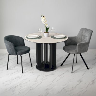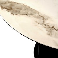 Нераскладной стол Korfu — это элегантное и функциональное решение для вашего интерьера. Его круглая столешница выполнена из МДФ толщиной 19 мм и покрыта керамикой толщиной 6 мм, имитирующей белый мрамор. Это придает столу изысканный вид и приятную тактильность. Поверхность стола не царапается, не впитывает жидкость и легко моется, что обеспечивает долгий срок службы и минимальный уход.