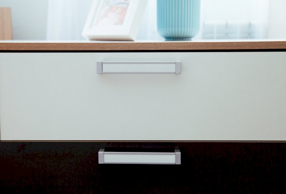 2. Фасады обрамлены цветной кромкой Ясень шимо светлый.