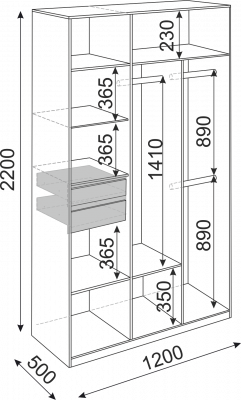| Наполнение шкафа | штанга / выдвижные ящики / зеркало |
