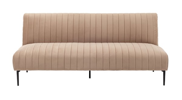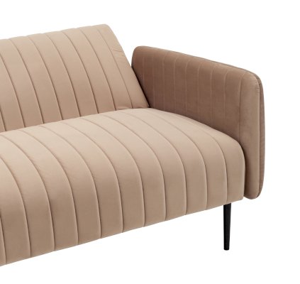 Скандинавский минимализм и лаконичный силуэт прямого дивана на металлических ножках идеально вписывается в современный интерьер гостиной. Обивка выполнена из мягкого велюра и декорирована вертикальной строчкой. В качестве наполнителя использован высокопрочный ППУ, тип пружинного блока - змейка.
