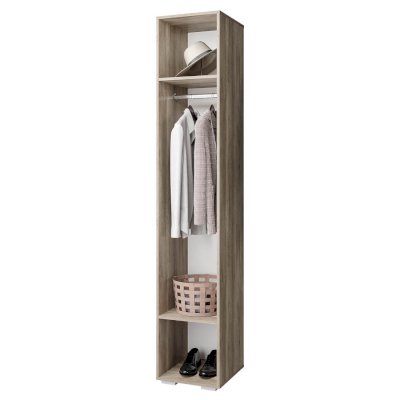 Дополнительным местом хранения вашего гардероба может стать пенал Наоми. Внутренне наполнение модели состоит из отделения для одежды на вешалках и двух полок. Фасад дверцы и корпус в цвете дуб каньон, позволит шкафу вписаться в любую комнату и украсить современный интерьер.