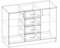 • Корпус, полки и фасады изготовлены из ЛДСП 16 мм с кромкой ПВХ 0,4 мм.