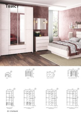 Модульная спальня Твист (Ижмебель) - за 53 921 руб. в Дмитрове. Купите на сайте dmitrov.onlinemarketmebeli.ru или по телефону 8(800)505-30-63 уже сегодня! Уточнить наличие, комплектацию, актуальную цену можно бесплатно у менеджера ежедневно. Закажите Модульная спальня Твист (Ижмебель) до конца акции! Доступна покупка в кредит, рассрочку. Доставим со склада или на заказ.