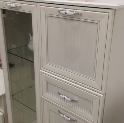Для полного погружения в классический стиль производитель создал серию «Венеция» не только в гостиной, но и в спальне, и в прихожей. На выдвижных ящиках используются шариковые направляющие полного выдвижения, которые обеспечат не только плавность хода, но и надежность, и тишину. Теперь не стоит переживать из-за неровности поверхности пола. Регулируемые опоры придают мебели хорошую устойчивость и при желании регулировку высоты.