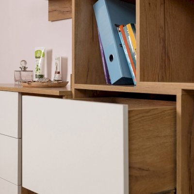 Стеллаж-трансформер - очень "гибкий" по ширине модуль. Его можно раздвинуть на необходимую ширину в пределах от 560 мм до 989 мм, таким образом занимая отведенное для него место в детской с точностью до миллиметра. Установите его как самостоятельный модуль или между шкафами, регулируя общую ширину шкафной группы. Также такой стеллаж отлично подойдет и для размещения в нише. С его помощью делать перестановку в комнате легко и просто! Дополнительно секции фиксируются между собой на межсекционные стяжки. Шкаф крепите к стене на подвесы! Ящики на шариковых направляющих полного выдвижения без лишней фурнитуры и удобно открываются за фасад.