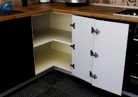 Угловые верхние и нижние шкафы с полным открытием (система двойных петель «Double loop»)