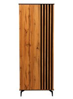 Торцы сверху и снизу покрыты черной пленкой и удачно гармонируют с реечным фасадом. Черные рамки подчеркивают границы шкафа. Внутренние полки и дверцы изнутри также выполнены в черном цвете. Таким образом достигается постоянный контраст, что выглядит очень эффектно!