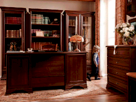 Кентаки - мебель классического стиля, отличающаяся природными цветами, отделкой, фактурой, всегда актуальна и востребована, она настолько универсальна, что без проблем впишется в любой современный дизайн. Стиль набора модульной мебели подчеркивается лакированной патинированной планкой в фасадах, карнизами - завершающим акцентом в зеркалах и высоких элементах набора, витиеватыми ручками.