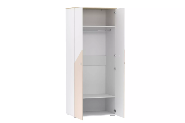 Двухстворчатый шкаф Банни поможет организовать хранение вещей в детской. Внутри модуля предусмотрены овальная штанга для одежды на вешалках. Широкие антресольная и нижняя полки подойдут для размещения коробок и аксессуаров. Классические глухие фасады надежно защитят содержимое шкафа от влаги и пыли. Скругленные ручки-кнопки не имеют острых граней.