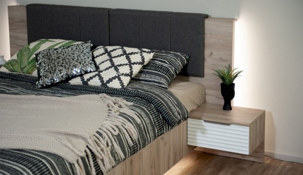 Прикроватная тумба Джулия - представитель европейского стиля минимализм. Декором белым глянцевым фасадам High Gloss служит фрезерованный рисунок «Волна» - подчеркивает зеркальный блеск, делает интерьер спальни особенным и неповторимым. Торцевые ручки из хромированного металла - яркий акцент фасадов. Тумба крепится к кровати - создает визуальную целостность, усиливает иллюзию парения. Выдвижной ящик на телескопических направляющих - поместит в себя все вещи, которые важно иметь под рукой - телефон, светильник или любимая книга. Идеально компонуются со всеми модулями системы Джулия.
