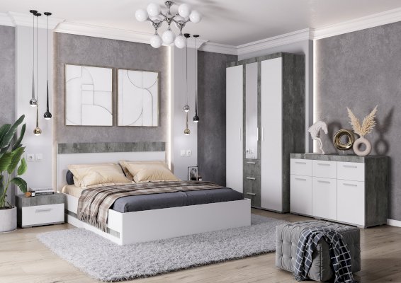 Отличный выбор для спальни – прикроватная тумба Инстайл. Белый матовый фасад придает модели свежести и легкости. А сочетание с цветом бетон делает тумбу очень современной. В выдвижном ящике, дополненным удлиненной ручкой геометрической формы, можно хранить все необходимые вещи.