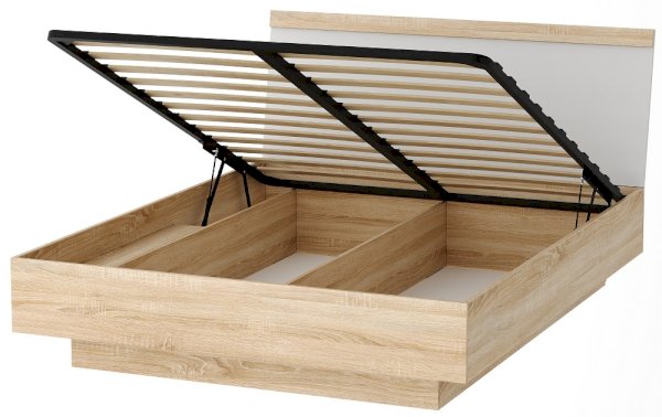 Кровать с ортопедическим основанием и подъемным механизмом Соната КРС-1600 Дуб Сонома/Белый глянец