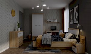 Кровать с ортопедическим основанием и подъемным механизмом Соната КРС-1400 Дуб Крафт белый/Антрацит