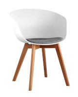 Сидение выполнено из пластика, который отличается повышенной износостойкостью, с подушкой. Деревянные неокрашенные ножки из массива придают устойчивость конструкции. Съемная подушка.
