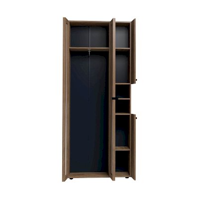 Nature 87 Шкаф для одежды и белья создаст все необходимые условия для хранения в прихожей верхней одежды и аксессуаров. В этом шкафу есть все необходимое для размещения верхней одежды: выдвижная штанга, верхняя полка, ряд регулируемых полок. Большая секция оснащена выдвижной штангой для развешивания пальто и курток на плечиках. Выдвижная штанга выдерживает вес до 10 кг. По желанию к модулю можно докупить светодиодную подсветку Nature 94, которая крепится под полку открытой ниши.