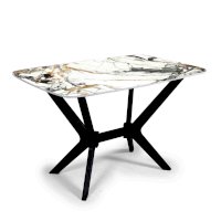 Столешница данного стола изготовлена из МДФ 16 мм, с применением фотопечати, рисунок которой защищен нанесением слоя специального лака. Одной из особенностей этого обеденного стола являются его ноги в форме крестовины. Это придает столу не только эстетическую привлекательность и индивидуальность, но и функциональность, так как данная форма ног гарантирует стабильность и прочность изделия.