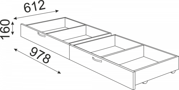 1. Дополнительные ящики МО6 для кроватей Осло с внутренними разделителями на роликовых опорах.