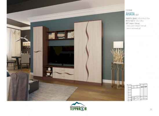 Гостиная Анапа (Террикон) - за 24 691 руб. в Дмитрове. Купите на сайте dmitrov.onlinemarketmebeli.ru или по телефону 8(800)505-30-63 уже сегодня! Уточнить наличие, комплектацию, актуальную цену можно бесплатно у менеджера ежедневно. Закажите Гостиная Анапа (Террикон) до конца акции! Доступна покупка в кредит, рассрочку. Доставим со склада или на заказ.
