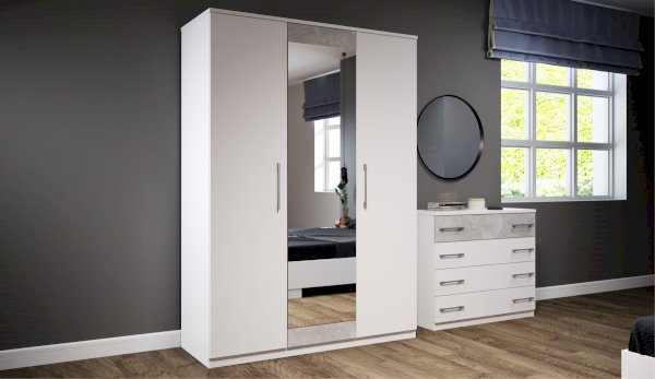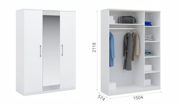 Классический распашной трехдверный шкаф выполнен в стиле минимализм: строгие линии, идеальные пропорции, отсутствие декора. Нейтральные цвета подойдут для любого стиля интерьера, их можно сочетать со множеством ярких и насыщенных оттенков тем самым полностью преображая пространство. Зеркало на фасаде визуально добавляет света и простора. Идеально компонуется со всеми модулями системы Аврора.