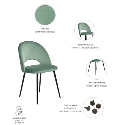 Лаконичный дизайн стула Leo с полукруглой спинкой в велюровой обивке понравится любителям комфорта и уюта. Благодаря сдержанным расцветкам и оригинальному силуэту стулья Leo подходят не только для домашних интерьеров, но и для оформления кафе, холлов отелей или офисных центров.