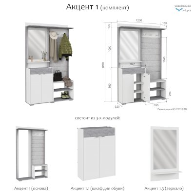 | Комплектация | вешалка / зеркало / сиденье / тумба |