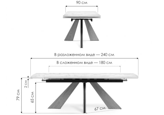 Длина разложенного столика, мм 2400