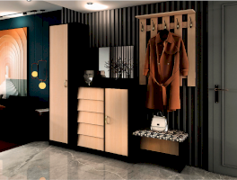 Интро - это целая серия мебели, с помощью которой вы можете обустроить прихожую. В серии представлены обувницы разных размеров с откидными створками, шкаф, зеркало, вешалки.