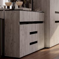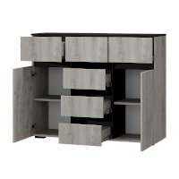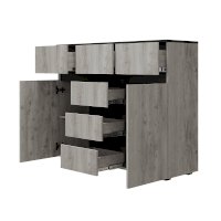 Комод «Мрия» состоит из 2 боковых зон с полками и 6 ящиков, в которых удобно хранить постельное бельё и мелочи.