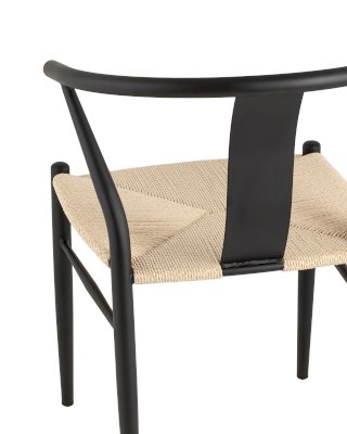 Обеденный стул Wishbone Style с металлическим основанием и сидением из джута - натурального текстильного волокна. Это отличный выбор для тех, кто заботится о здоровье и комфорте своих гостей. Материал гипоаллергенен, устойчив к грязи и пыли. Жесткое и прочное волокно не подвергается деформации, может выдерживать значительные нагрузки и способствует правильному распределению веса.