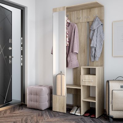 Прихожая Лига – идеальный выбор для небольшого пространства. Модель выполнена в цвете дуб сонома и будет прекрасно смотреться в современном интерьере. Вы с легкостью сможете расположить в ней все необходимые предметы гардероба благодаря открытым полкам, выдвижному ящику и зоне с крючками. Зеркало во весь рост – очень функциональное решение.