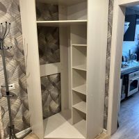 шкаф пошел по цвету, в тон дверей, светло серый,