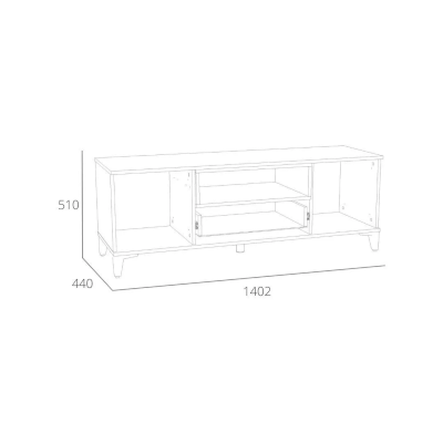 Тумба оснащена полками за распашными дверками, ящиком, который выдвигается плавно и бесшумно благодаря шариковым направляющим, а также открытой нишей, в которой можно удобно расположить книги или элементы декора, а высокие опоры придают внешнюю легкость и обеспечивают быстрый и легкий доступ во время уборки.