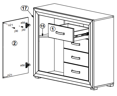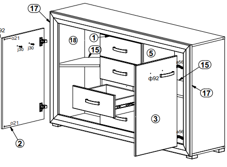 Двери шкафа могут устанавливаться как с правой, так и с левой стороны.