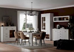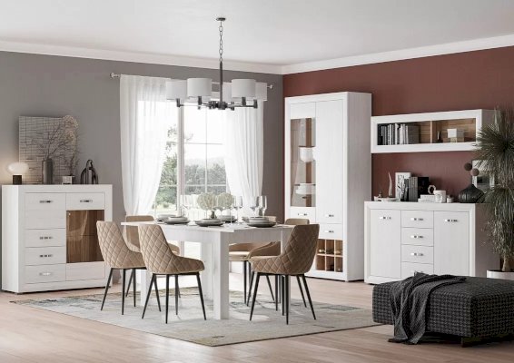 MALTA – коллекция мебели, состоящая из множества функциональных модулей, которые позволяют обустроить любую комнату. Великолепные белоснежные фасады коллекции Malta удачно контрастируют со вставками из «орех лион», продолговатые  металлические ручки добавляют изящества, а подсветка стеклянных полок выгодно подчеркивает древесную структуру дерева.