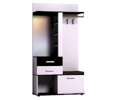 Многофункциональный шкаф Норвуд 70 - находка для маленькой прихожей. В небольшом по габаритам модуле (шириной 1120 мм и глубиной 400 мм) сочетается всё необходимое для обеспечения функциональности прихожей: крючки, стационарная штанга, открытые полки, выдвижные ящики, отделение за откидным фасадом, открытая ниша, зеркало с подсветкой. Встроенная светодиодная подсветка включается при помощи аккуратного кнопочного выключателя. Откидной фасад дополнительно фиксируется при закрывании магнитной защелкой. Горизонтальные детали толщиной 22 мм и фасад верхнего ящика из теплого темного ЛДСП в декоре Орех Шоколадный играют на контрасте с белым декором модуля. В комплектацию входит мягкое сидение, которое позволяет обуваться с комфортом. Регулируемые опоры помогают компенсировать неровности пола в прихожей. Собрать Шкаф МЦН можно как на правую, так и на левую сторону.