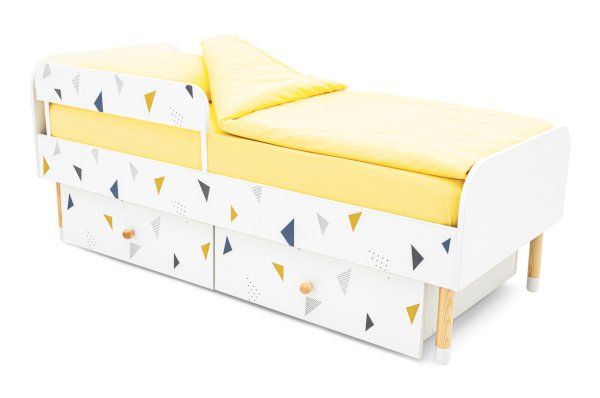 Для обеспечения дополнительной безопасности малыша во время сна можно приобрести съемный бортик. Особенность его в том, что он закрывает кровать не по всей длине, а только ее часть, благодаря такому конструктиву, ребёнок легко сможет сам забираться на свое спальное место.