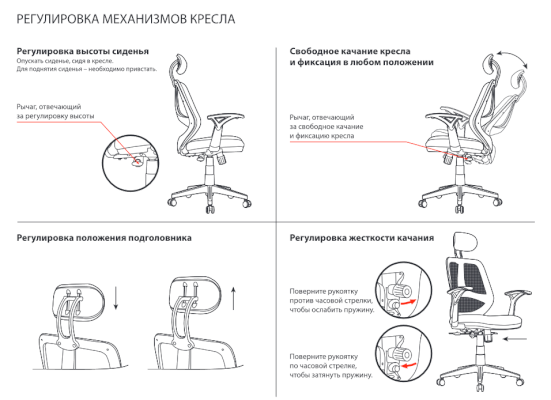 Тип механизма: "синхронный" качание с синхронным отклонением сидения и спинки 1:2 или 1:3