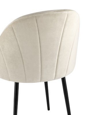 Обивка на спинке имеет вертикальную стежку в виде веера. Ножки изготовлены из металла.