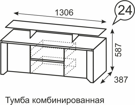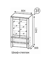 В центре модульного набора будет отлично смотреться ТВ-секция с навесной полкой. Шкафы-серванты с зеркальными дверцами позволят Вам расположить сервиз, предметы декора и книги. Вместительный комод с навесным зеркалом станут идеальным дополнительным вариантом для хранения одежды, белья и других личных вещей.