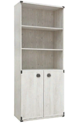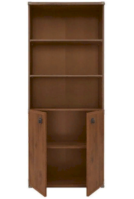 Шкаф разделен на 2 отделения: верхнее –открытое отделение с полками, нижнее – отделение за распашными дверями, за которыми расположена 1 полка