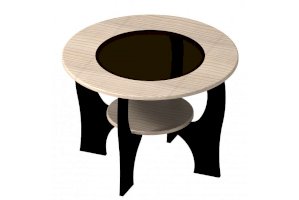 Стол журнальный станет прекрасным украшением интерьера. Круглая столешница оснащается вставкой из тонированного стекла. Фигурные ножки прикрепляются к столешнице и небольшой круглой полочке.