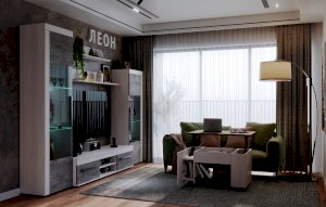 Посудный шкаф со стеклянной дверцей позволит выставить в гостиной те коллекционные и памятные вещицы, которыми вы дорожите. Стеклополки в обработке еврокромкой выдерживают до 10 кг каждая. Их можно декоративно подсветить с помощью светодиодной подсветки (в комплекте не поставляется, приобретается отдельно). Фасад перенавешивается на левую и правую сторону. Серебристая стильная ручка из массива дерева и серое тонирование стекло фасада вносят смелые дизайнерские штрихи в восприятии актуального декора "под бетон".