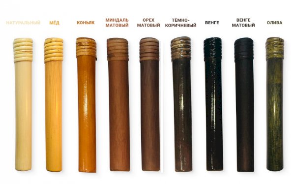 Цвета: натуральный, мед, коньяк, миндаль матовый, орех матовый, темно-коричневый, венге, венге матовый, олива.
