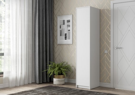 Бюджетная версия белого шкафчика для одежды, удобные размеры, глубокие полочки.