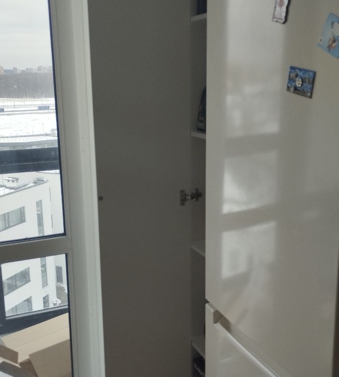 Недорогой, удобный и красивый шкаф, встал иделаьно за холодильник, как и хотели.