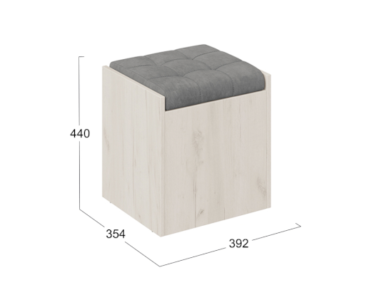 Эксклюзивная древесная текстура каркаса пуфа «Дуб крафт Белый» в сочетании с велюром «Серый» станет эффектным дополнением в дизайне прихожей, кухни и других уголках квартиры.